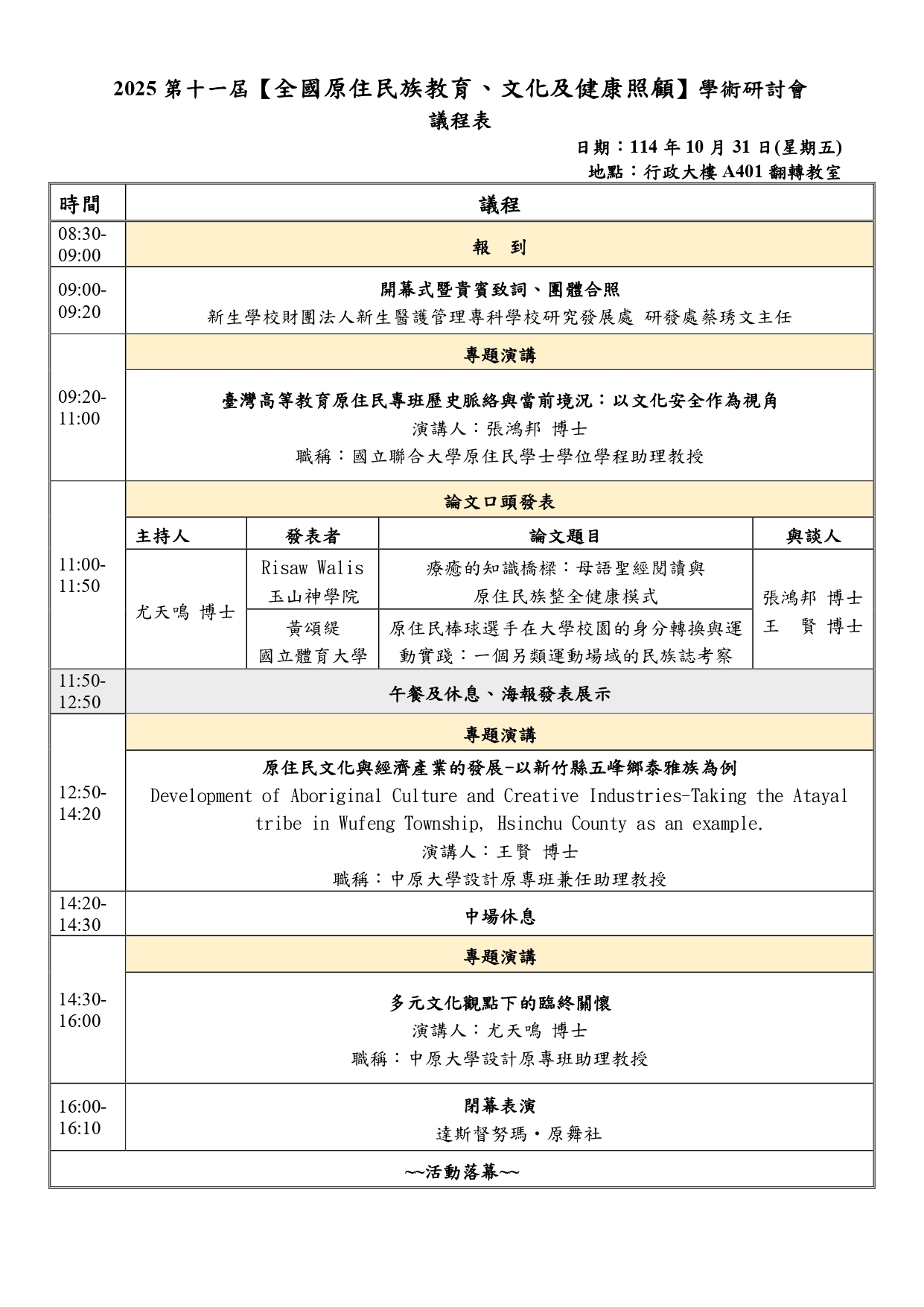 「2025第十一屆全國原住民族教育、文化及健康照顧學術研討會」