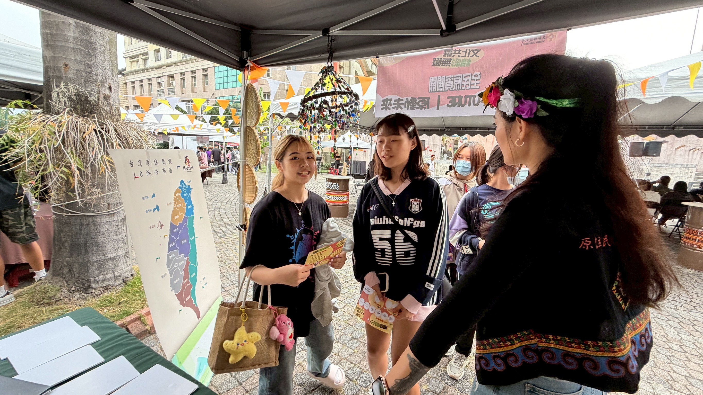 此外,活動結合諮商輔導中心暨資源教室所辦理之《文化共融・精彩無礙》無障礙友善校園與多元文化融合傳承宣導暨期末聯誼活動,設置手作市集與闖關攤位,由學生介紹原住民族鄉鎮市地理分布、文化特色及各族族語,透過互動體驗方式,提升師生對原住民族文化的敏感度與認同感,落實全民原教理念。